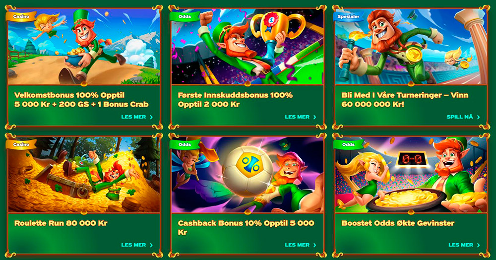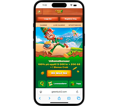 | GreenLuck casino bonus | 100 % opptil 5 000 kr + 200 gratisspinn + Bonus Crab |