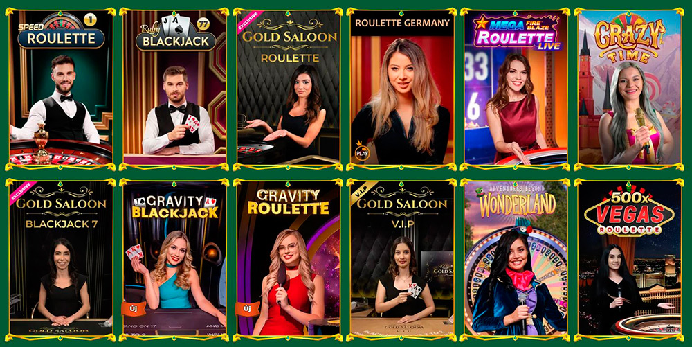 Livekasinoet drives av Evolution, Pragmatic Live og Ezugi, og dekker følgende: