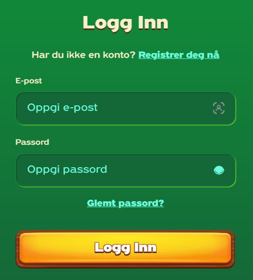 Heldigvis er GreenLuck pålogging like enkelt som det å registrere seg er. Man har svært få steg å utføre for man er i gang med spillingen igjen.